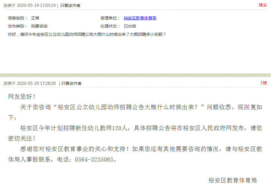 關(guān)于您咨詢“裕安區(qū)公立幼兒園幼師招聘公告大概什么時候出來?”問題收悉,現(xiàn)回復(fù)如下: