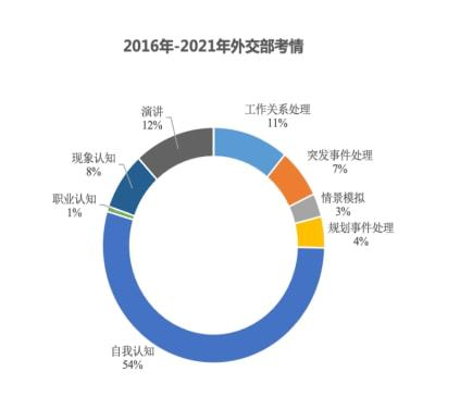 我們對外交部幾年試題進(jìn)行了梳理和研究,考查內(nèi)容既涉及工作關(guān)系處理、突發(fā)事件處理、規(guī)劃事件處理、職業(yè)認(rèn)知、現(xiàn)象認(rèn)知這五種基礎(chǔ)題型,也包括自我認(rèn)知、演講、情景模擬這三類小眾題型。