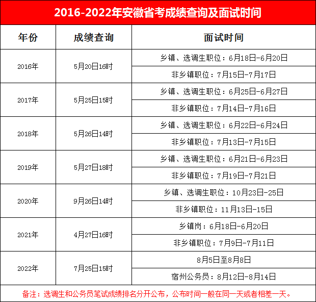 2016-2022年安徽省公務(wù)員成績查詢及面試時(shí)間匯總