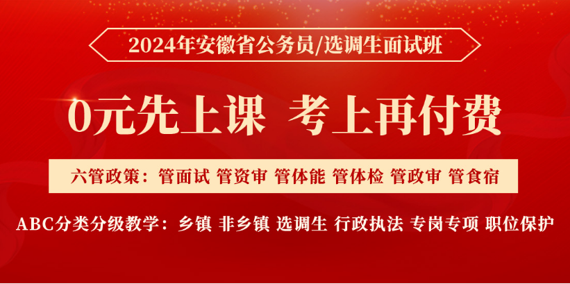 我們根據(jù)歷年國家公務員面試考情定制了2024年安徽省公務員面試班,業(yè)內(nèi)實力專家團隊將與您并肩戰(zhàn)斗!我們將提供科學的課程安排與出色的心理訓練和技術指導,戰(zhàn)勝一切對手!助您成公!