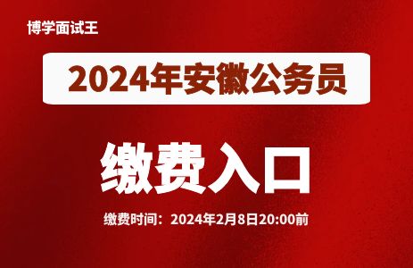 2024安徽公務(wù)員考試公告于2024年1月25日正式發(fā)布,招錄7832人(職位表),報(bào)名時(shí)間為1月29日-2月4日,公共科目筆試時(shí)間為3月16日,專業(yè)科目筆試時(shí)間為3月17日。更多安徽公務(wù)員考試信息敬請關(guān)注安徽博學(xué)教育。