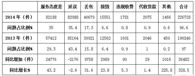 2013-2014快遞業(yè)務(wù)有效申訴問(wèn)題