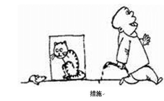 4、漫畫題 地上有一只老鼠,有一個人在墻上畫了一只貓,旁邊寫著“措施”,然后這個人就走了。談?wù)勀愕目捶ā?/span>