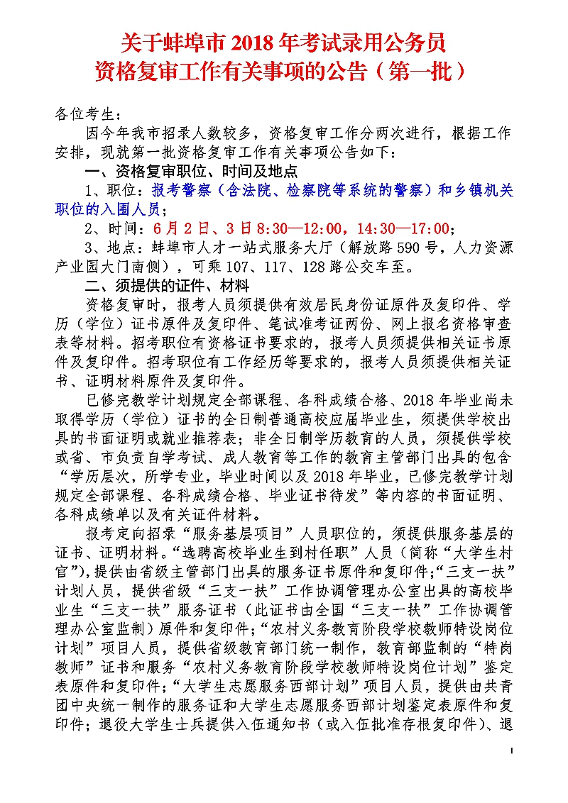 2、非鄉(xiāng)鎮(zhèn)職位(含公安特殊技能職位)的資格復(fù)審時間定于6月5日(周二),上午:8:00—12:00,下午: